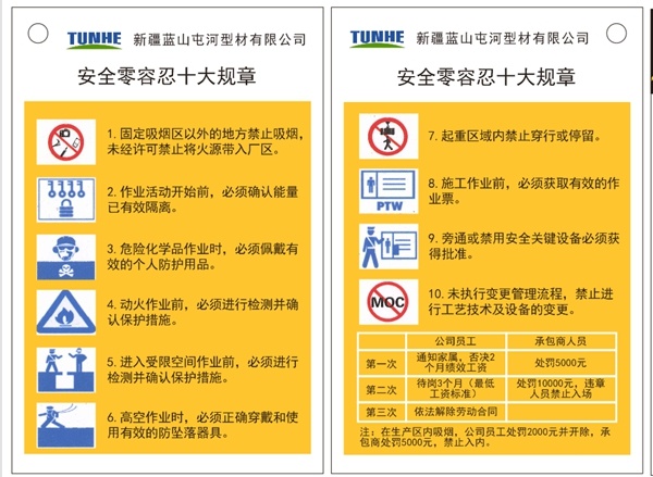 “零容忍”理论依据是1982年美国政治学家詹姆斯威尔逊和犯罪学家乔治凯琳提出的“破窗理论”,即:如果那些损坏的窗户不被修理好,可能将会有破坏者破坏更多的窗户。最终他们甚至会闯入建筑内,如果发现无人居住,也许就在那里定居或者纵火。打击“零容忍”行为,正是一种有效合理的修补“破窗”的策略。“零容忍”就是不能容忍,禁令就是不能违反,是增强自我安全意识和自我保护的主动性,努力实现安全生产,保障员工生命安全的关键条款,是全体员工必须遵守的保命条款。不仅要强化安全文化建设,提升全员安全素质,更要把安全生产“零容忍”十大规章的理念、宗旨在实践过程中升华、扩散、渗透,为全体员工所认识、认知、认同、接受,并化为全体员工遵章守法、按章作业的自觉行动,使安全文化内化于心,外化于行。