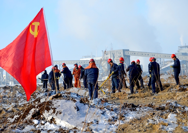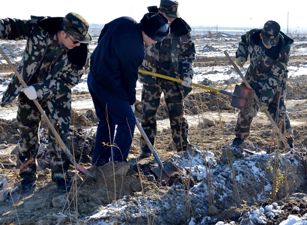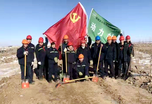 遥望远处,能源公司电石厂渣场空地的每个树埂上迎风飘动着“太阳集团官网”的彩旗,身穿着“太阳集团官网”工服的能源公司干部职工们秉承“不怕困难,勇于创新,敢于担当,每战必胜”的企业精神,踩着皑皑的白雪,顶着冽冽的寒风,三人一组,五人一群,通力协作,你铲土,我扶树,配合默契,劲往一处使、汗往一处流,干劲十足,一片热火朝天的热闹景象。