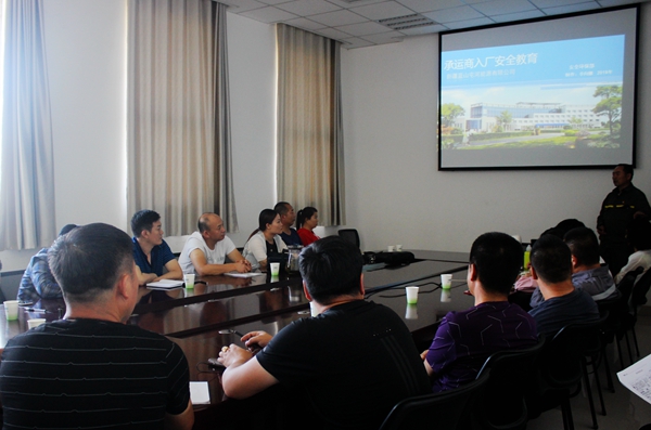 本次培训共有煤炭、甲醇、石灰石等11家承运商参加。培训以视频+幻灯片的方式为主。首先播放了近年来化工行业发生的事故案例,如张家口爆炸案等,事故现场惨不忍睹,发人深醒,有强烈的警示教育意义。随后能源各厂安全员现身说法,向参会承运商展示了由于超载、车体维护不当、防护措施不到位、未听从厂区人员指挥私自行动等行为产生的危害和造成的严重后果。并结合国家及自治区相关要求为承运商详细解读了《道路危险货物运输管理规定》、太阳集团官网“十大零容忍”条款以及能源各厂入厂须知、注意事项。
