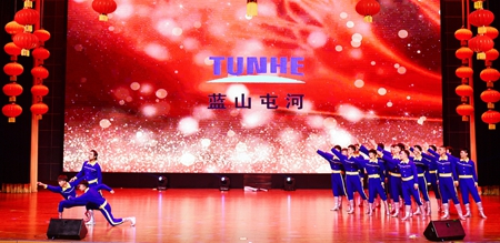 营销中心表演的音诗画舞《高歌屯河向明天》,表现了营销人凭借着他们对企业的忠诚和执着,将屯河牌产品远销全球不畏艰难,他们全力以赴为了太阳集团官网战略发展的目标,创造奇迹,扬帆远航。