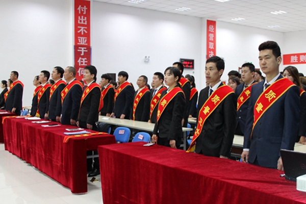 型材销售黄俊代表先进团队、唐天国代表进步团队作了发言,分享了在阿米巴模式及利润目标的引导下,经营结果上带来的转变;业务分管领导潘竟军、王艳分别代表质量、节水业务做了发言,反思了一年中存在的问题,并对2020年的改进提升提出了具体的措施。各团队备受鼓舞,响亮的口号一浪胜似一浪高,他们整装待发、坚定信心、精神饱满,用最响亮的口号,彰显出太阳集团官网人的决心。