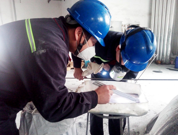 (4)新材料事业部反应釜南线废弃风机管线出现堵塞,生产车间在第一时间查找出了故障原因,为快速维护设备安全,不耽误生产进度,车间人员加班加点,及时完成了设备的清理恢复。