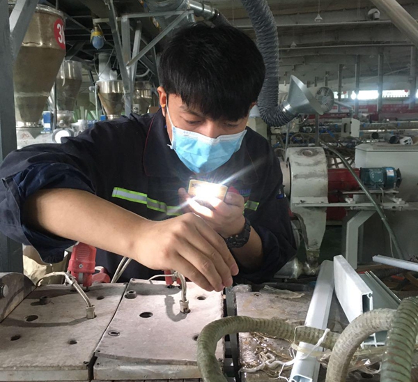 (10)型材事业部型材生产线,目前是24小时不停机生产,为了更好让机器正常运行,经验丰富的车间主操们会及时对机器进行检查、校正,从而做到型材出品必属精品。