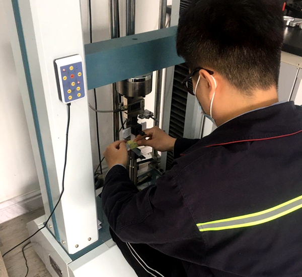 (11)千锤百炼才成钢,型材事业部改性降解产品要历经上千次的试验,才能够达到标准要求,及客户的满意。看,改性实验室的实验员们,正在专心的用万能拉伸机做力能拉伸试验。
