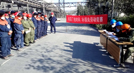 近日,能源公司电石厂党支部开展了以“抢时间,补损失”为主题的技能比武。