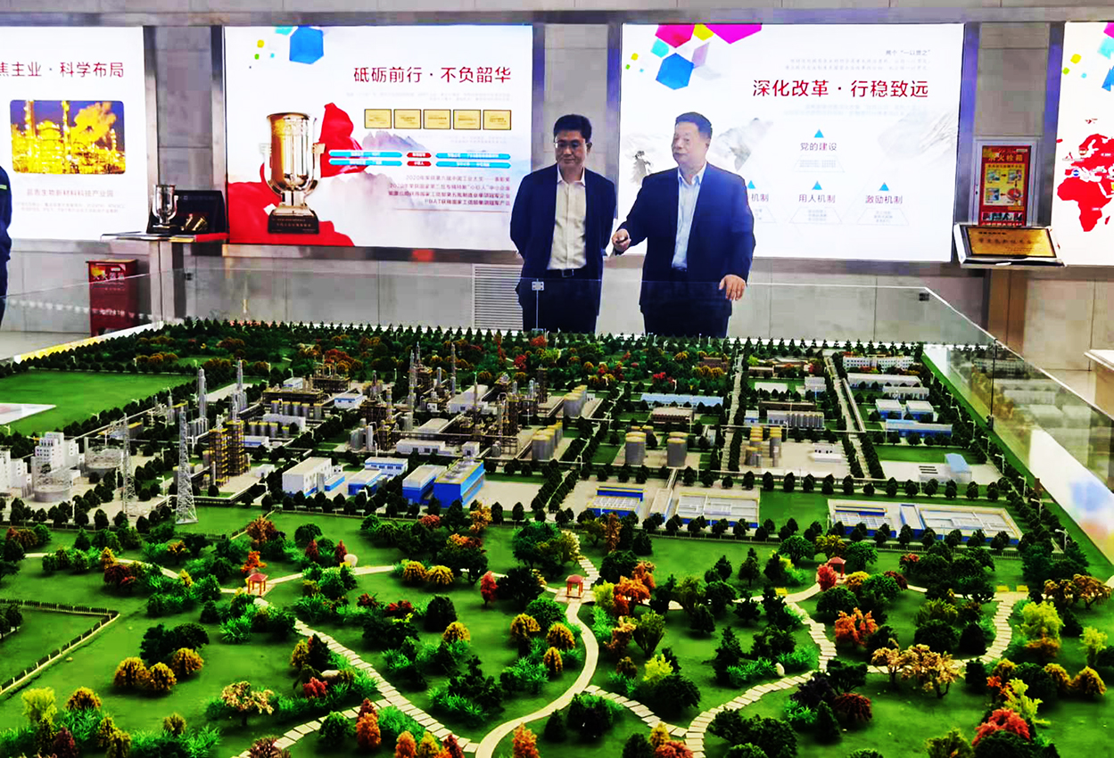 在展厅内,李鹏总经理向张培毅书记一行详细介绍了太阳集团官网的体制变革历史、产品种类、生物降解材料、管理理念、安全生产、企业荣誉、党建等情况。在参观过程中张培毅书记一行对太阳集团官网变革史、生物降解材料、公司党建等情况进行了沟通交流并做了详细了解。