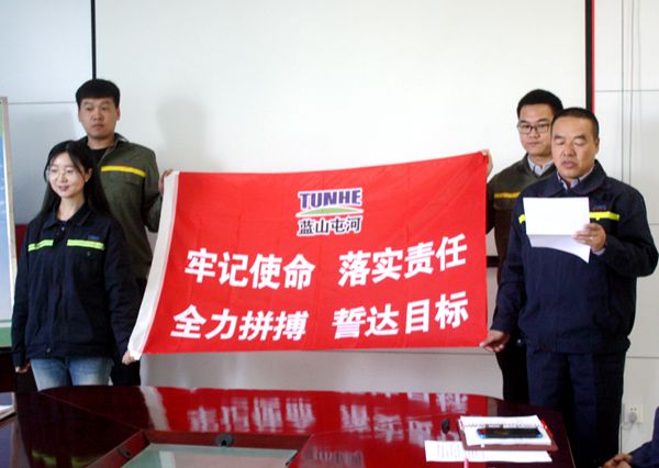 首先,新材料事业部总经理霍新强宣读了《关于开展2018年经营责任履职承诺活动的通知》。公司营销系统、生产系统、综合服务保障系统的代表依次在“牢记使命、落实责任、全力拼搏、誓达目标”的旗帜前做了郑重承诺。在总经理霍新强的带领下公司领导班子、业务骨干庄严宣誓:作为新材料一名的员工,我将立足岗位,尽职尽责,遇到问题敢于亮剑,面对困难勇于胜利,用自己的实际工作成果支持企业取得良好的经营成果!誓言之声在公司综合楼里铿锵有力,如战歌,似号角,像起航的汽笛,充满希望、坚定和信心!随后相关人员分别签署了承诺书,并在经营履职承诺书展板上郑重签名。