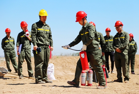 为了切实加强聚酯公司的日常安全工作,提高全员安全消防素质、安全防范和应急自救能力,近日,公司组织70余名新员工在新项目基地开展了“消防器材实操演练”。